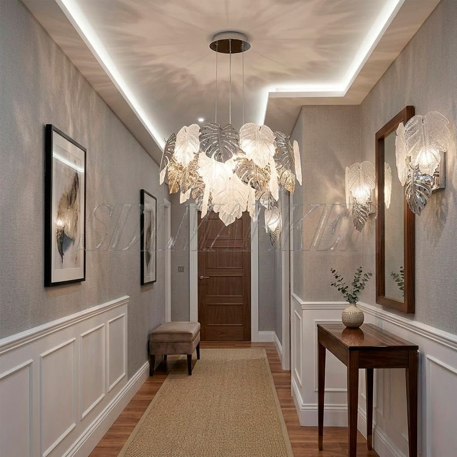 Изящный настенный светильник из коллекции Fogli (арт. MC0110-001) привносит в интерьер нотки роскоши и утонченной природной эстетики. Изготовленный из прочного алюминия с качественным гальванопокрытием в цвете хром, этот светильник декорирован уникальными элементами из стекла ручной работы, которые создают неповторимую игру света на стенах. Модель рассчитана на 3 лампы с цоколем E14 общей мощностью 81 Вт, излучающих уютный теплый свет с температурой 3000 К. Благодаря высокому индексу цветопередачи (Ra ≥ 90), бра делает оттенки предметов в комнате естественными и глубокими. При габаритах 385x330 мм этот светильник идеально подходит для акцентной подсветки в гостиной, прихожей или спальне, становясь полноценным арт-объектом в вашем доме.