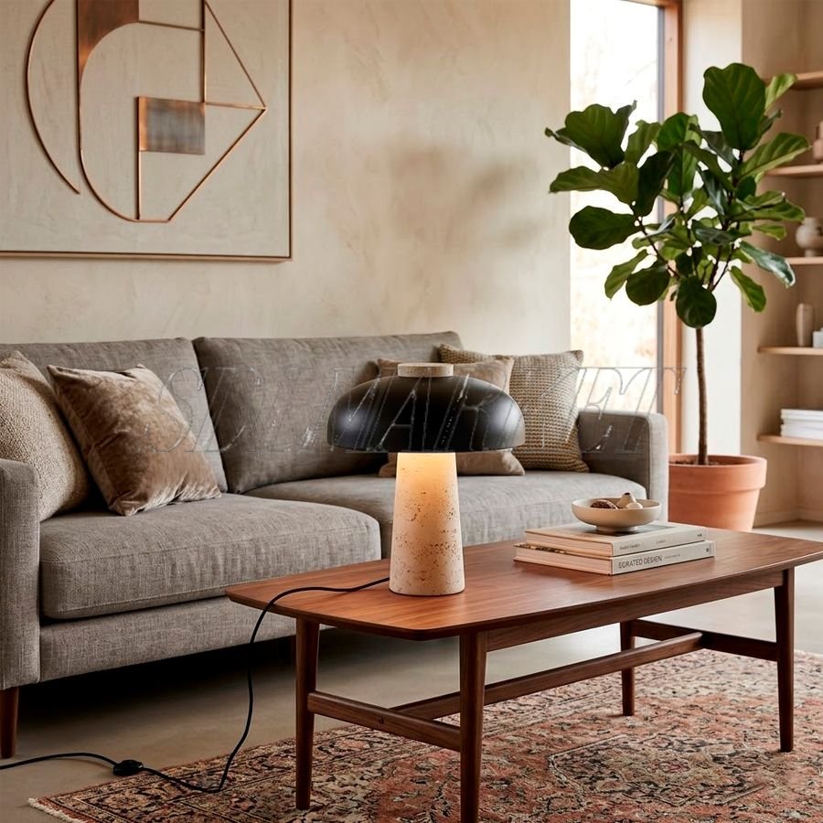 Настольная лампа из эксклюзивной коллекции Travertine (артикул ED0060-002) станет изысканным акцентом в современном интерьере, сочетая в себе природную эстетику и индустриальный шик. Массивное конусообразное основание выполнено из натурального травертина с его уникальной пористой текстурой, которая эффектно контрастирует с лаконичным полусферическим плафоном из черного матового металла. Благодаря компактным габаритам (высота 300 мм, диаметр плафона 240 мм), этот светильник обеспечивает мягкое, направленное освещение, идеально подходя для оформления прикроватной зоны, рабочего стола или уютного уголка для чтения в гостиной.