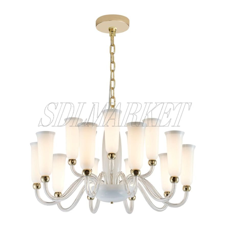 Эта статусная люстра представляет собой воплощение современной неоклассики, сочетая в себе прочность нержавеющей стали с изысканным гальваническим покрытием и нежность белого нефритового стекла. Конструкция диаметром 1000 мм и высотой 680 мм украшена грациозными изогнутыми трубками из прозрачного хрусталя, которые в сочетании с двенадцатью матовыми плафонами-тюльпанами создают мягкое, но интенсивное свечение. Обладая внушительной мощностью 158 Вт и теплым спектром 3000 К, модель обеспечивает исключительный визуальный комфорт и естественность оттенков благодаря высокому индексу цветопередачи (≥ 90). Такой светильник станет безупречным дополнением для просторных интерьеров, где преобладают премиальные материалы, такие как темный орех, мрамор и латунь, подчеркивая элитарность и масштаб пространства.