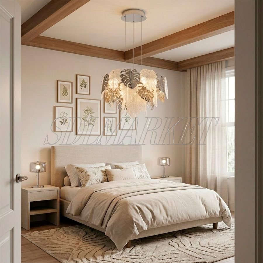 Подвесная люстра из коллекции Fogli (арт. MC0110-002) — это воплощение элегантности и современного стиля, созданное для ценителей утонченного дизайна. Модель выполнена в цвете хром из алюминия с гальванопокрытием и декорирована изысканными деталями из стекла ручной работы, которые создают неповторимую игру света и тени. Люстра оснащена 9 цоколями типа E14 общей мощностью 81 Вт, обеспечивающими комфортную цветовую температуру 3000 К. Благодаря высокому индексу цветопередачи (Ra ≥ 90), освещение максимально точно передает естественные оттенки предметов, подчеркивая статусность интерьера. При диаметре 600 мм и высоте 370 мм эта модель идеально подходит для акцентного освещения обеденных зон, уютных гостиных или спален, наполняя пространство атмосферой тепла и роскоши.