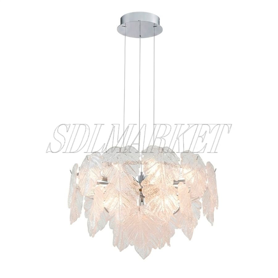 Подвесная люстра из коллекции Fogli (арт. MC0110-005) — это воплощение природной эстетики в современном исполнении, где центральным элементом выступает каскад из стекла ручной работы, имитирующий нежную листву. Арматура выполнена из высококачественного алюминия с долговечным гальваническим покрытием в цвете «глянцевый хром», что придает модели изысканный блеск и устойчивость к внешним воздействиям. Благодаря девяти лампам с цоколем E14 и общей мощностью 81 Вт, люстра обеспечивает яркое, но мягкое освещение с цветовой температурой 3000 К, создавая атмосферу домашнего тепла. Особое внимание уделено качеству света: индекс цветопередачи CRI ≥ 90 гарантирует, что все оттенки интерьера будут выглядеть максимально естественно и насыщенно, как при дневном освещении.