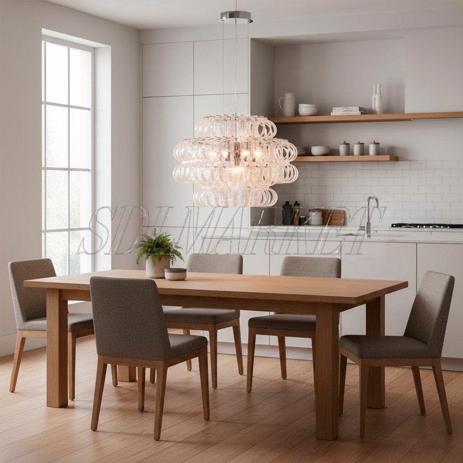Дизайнерская подвесная люстра из эксклюзивной коллекции Halo Glass в цвете хром представляет собой гармоничный симбиоз индустриальной прочности и художественного изящества. Корпус из высококачественной нержавеющей стали с долговечным гальванопокрытием служит надежной основой для каскада элементов из стекла ручной работы, которые создают неповторимую игру бликов. Модель оснащена 14 лампами с цоколем G9 суммарной мощностью 70 Вт, обеспечивающими комфортное освещение с теплой цветовой температурой 3000 К. Благодаря высокому индексу цветопередачи ≥ 90, светильник сохраняет естественную сочность красок интерьера, а выверенные габариты (диаметр 600 мм, высота 430 мм) позволяют выигрышно разместить его в гостиной или столовой. Купить люстру Halo Glass — значит наполнить пространство мягким сиянием и подчеркнуть безупречный вкус владельца.