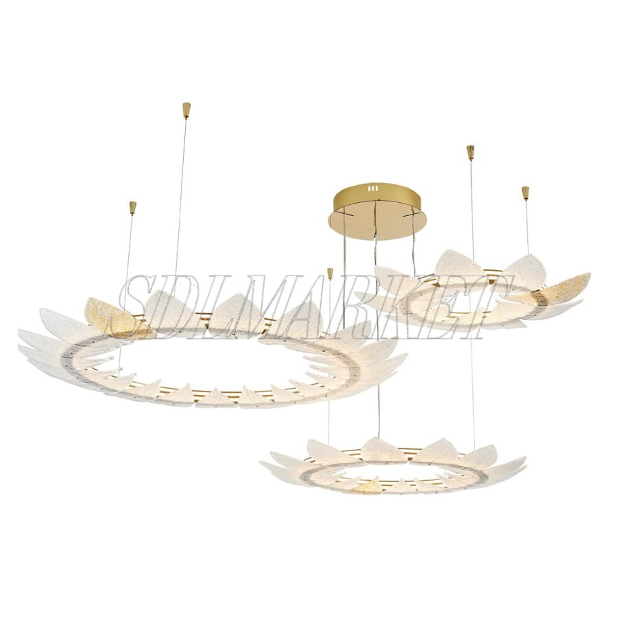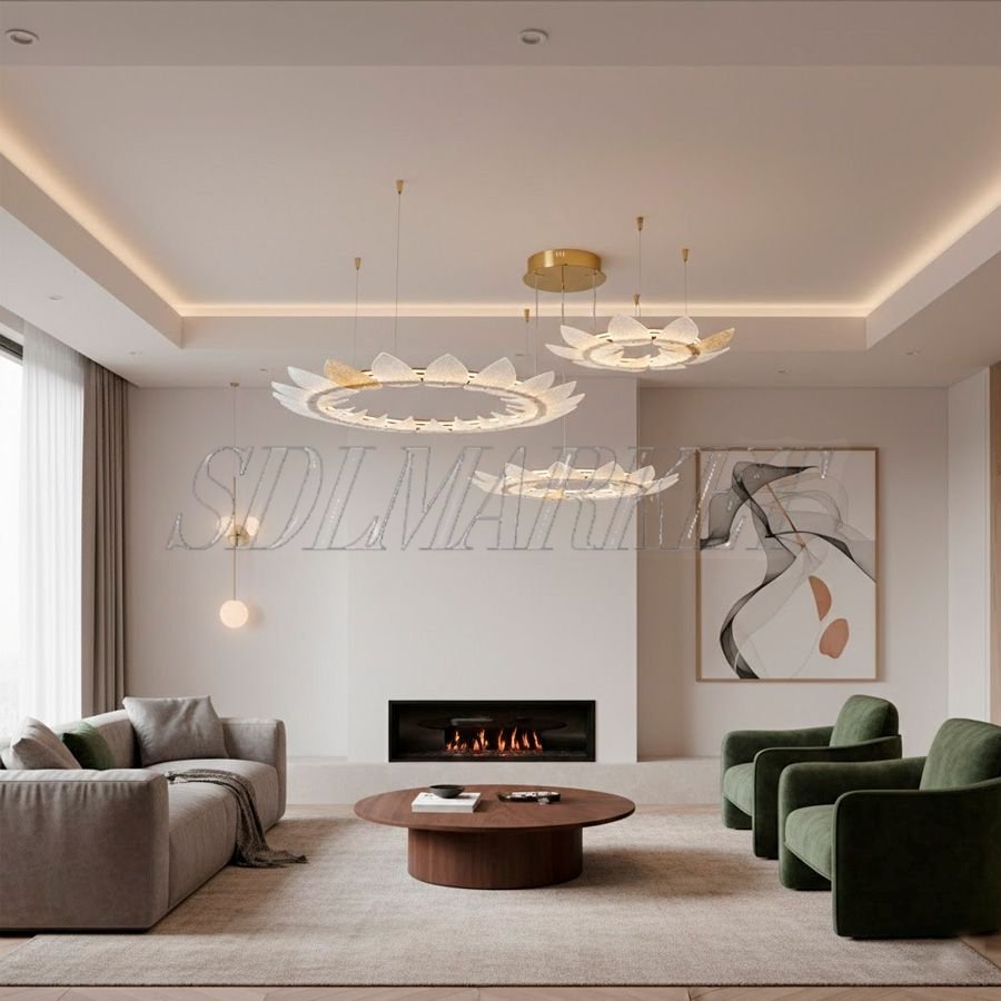 Дизайнерские светильники Luma — это симбиоз природной органики и передовых технологий освещения. Подвесные люстры в оттенке «матовое золото шампань» выполнены из высококачественного алюминия с долговечным гальваническим покрытием, что гарантирует сохранность премиального внешнего вида на десятилетия. Главным акцентом коллекции являются декоративные элементы из стекла ручной работы, имитирующие нежные лепестки, которые мягко рассеивают свет. Благодаря встроенным LED-модулям с цветовой температурой 3000 K и высоким индексом цветопередачи CRI ≥ 90, коллекция Luma создает визуально комфортную среду, сохраняя естественные оттенки интерьера и подчеркивая фактуру премиальных материалов.