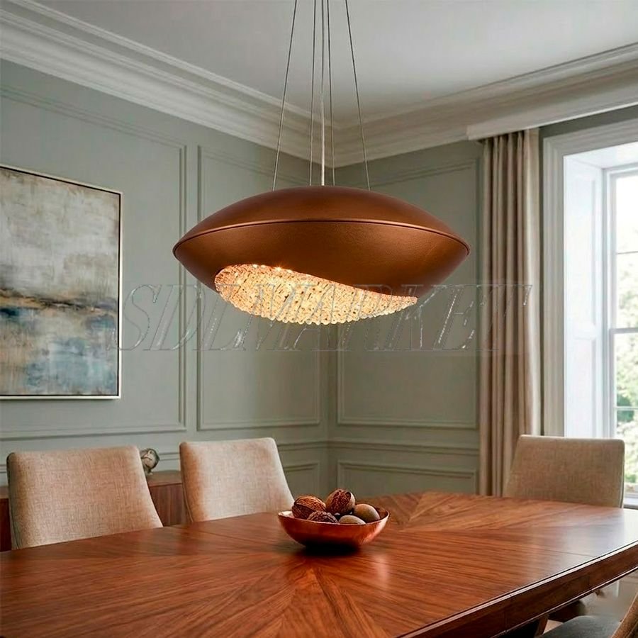 Подвесной светильник Angel"s Eyes артикул VL0130-006 — это воплощение современного стиля и роскоши, которое станет центральным элементом вашего интерьера. Модель выполнена в эффектном сочетании металлического корпуса золотой фольги и ослепительный блеск боросиликатного корончатого стекла (K9 Crystal), создающего неповторимую игру света. При мощности 63 Вт светильник обеспечивает мягкое и комфортное свечение с теплой цветовой температурой 3000 К, идеально подходящее для создания уютной атмосферы в гостиной или спальне. Компактные габариты D600*H160 мм позволяют гармонично вписать его в помещения с разной высотой потолков, подчеркивая безупречный вкус владельца.