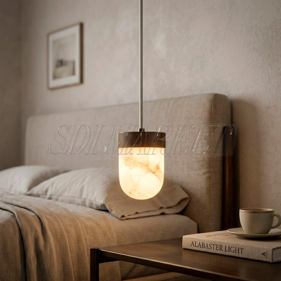 Подвесной светильник из коллекции Brass Light (арт. EX0070-005) представляет собой изысканное сочетание природных материалов и индустриальной эстетики. Модель выполнена в цвете темной латуни, который эффектно контрастирует с мягким, полупрозрачным свечением плафона из натурального алебастра. Особое внимание привлекает верхняя часть плафона: она выполнена из металла с рельефной накаткой (сетчатой фактурой), создающей приятный тактильный и визуальный акцент, который гармонирует с проводом в защитной металлической оплетке-сеточке. Благодаря компактным размерам (диаметр 105 мм) и регулируемой длине провода до 1700 мм, этот светильник станет идеальным дополнением для прикроватных зон, кухонных островов или пространства у зеркала в ванной комнате, обеспечивая мягкий, рассеянный свет с использованием сменной лампы формата G9.