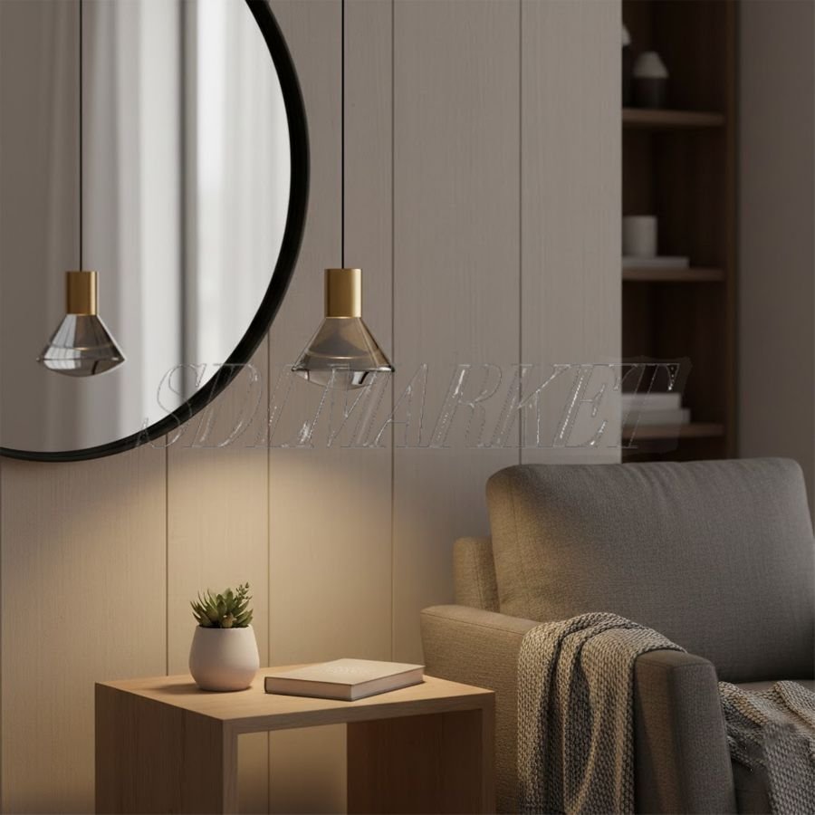 Эти подвесные светильники — идеальное сочетание современной роскоши и минимализма. Изготовленные из светлой латуни, они привносят в интерьер благородное тепло. Акриловый плафон с его характерной огранкой имитирует хрусталь, но выглядит более современно. Он мастерски преломляет свет, создавая на стенах мягкие направленные лучи и уютную атмосферу. Благодаря сочетанию латунного основания и прозрачного акрила, светильники кажутся легкими, почти невесомыми, при этом оставаясь выразительным акцентом любого помещения.