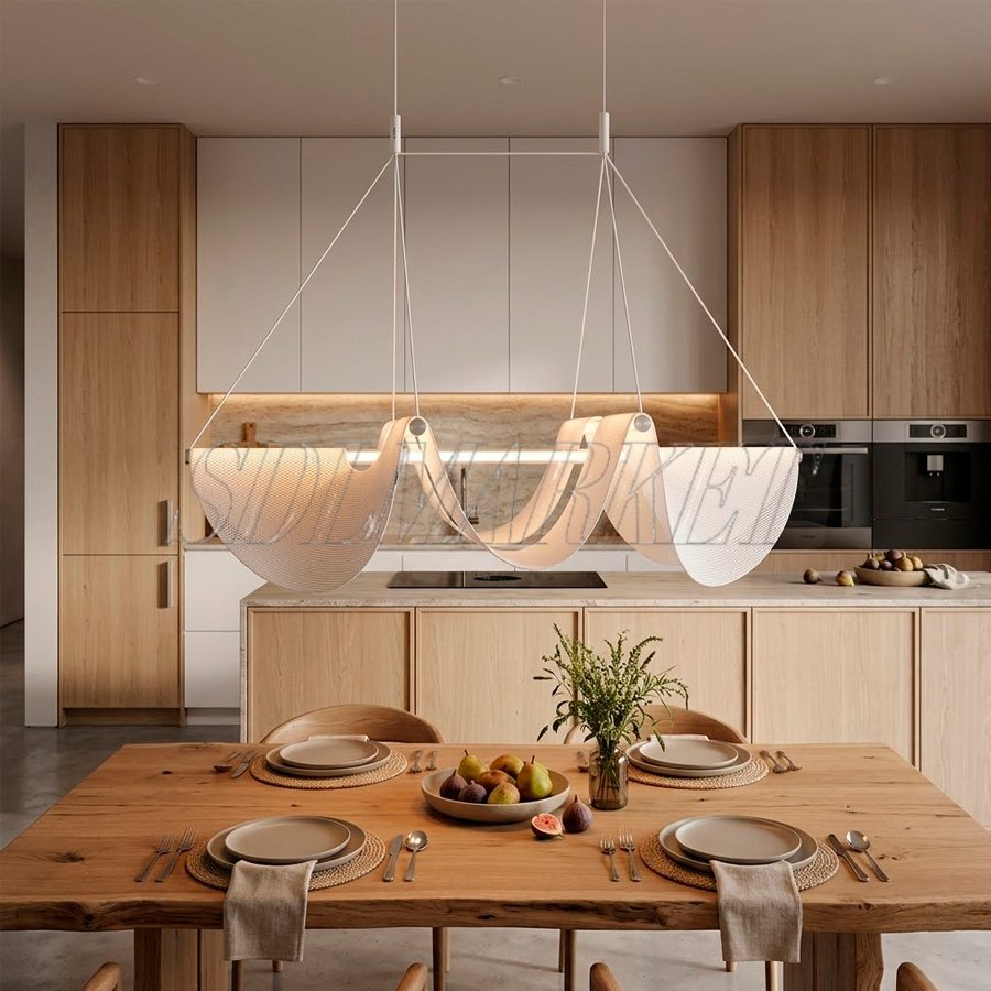 Подвесной светильник Drape ED0080-002 представляет собой масштабную интерпретацию современного светового дизайна, где вытянутая форма идеально подходит для зонирования просторных интерьеров. Сочетание высококачественной металлической арматуры и инновационных плафонов из текстиля и стекла создает эффект невесомых световых волн, парящих в пространстве. Благодаря длине 1180 мм, эта модель станет безупречным решением для освещения кухонного острова, длинного обеденного стола или рабочего кабинета, наполняя помещение мягким, комфортным светом. Белый текстильный рассеиватель в комбинации с прозрачными элементами подчеркивает эстетику минимализма и скандинавского стиля, делая светильник Drape не просто функциональным прибором, а ключевым декоративным элементом вашего дома.