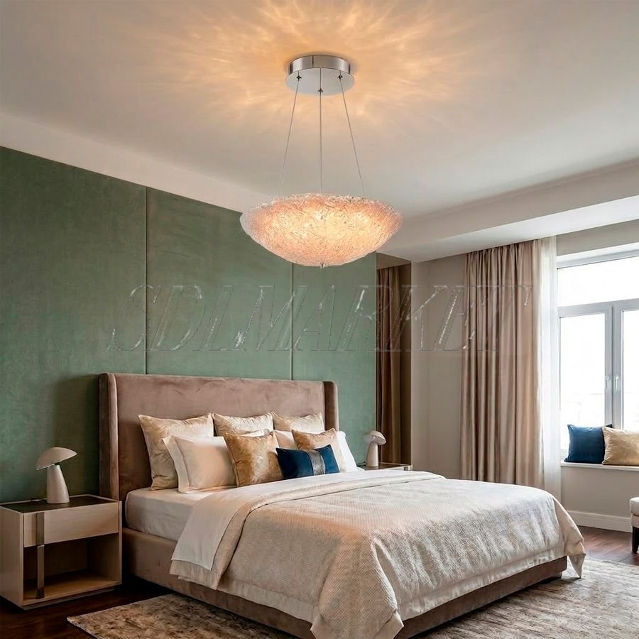 Подвесной светодиодный светильник из коллекции Glitter (артикул MC0080-001) — это компактный дизайнерский акцент, созданный для ценителей утонченной современной роскоши. Модель диаметром 300 мм и высотой всего 80 мм выполнена из высококачественной нержавеющей стали с износостойким гальваническим покрытием в цвете «зеркальный хром». Главным украшением светильника служит плафон из фактурного стекла ручной работы, чья поверхность имитирует искрящуюся текстуру льда, создавая неповторимую игру бликов. Благодаря встроенному LED-источнику с теплым светом 3000 К и профессиональным индексом цветопередачи CRI ≥ 90, этот подвес обеспечивает максимально естественное и комфортное освещение, идеально подходящее для локального зонирования в спальне, прихожей или над компактной барной стойкой в интерьерах стилей неоклассика и минимализм.