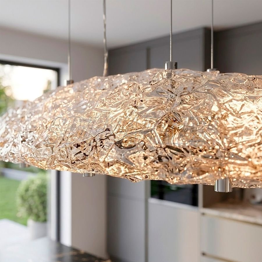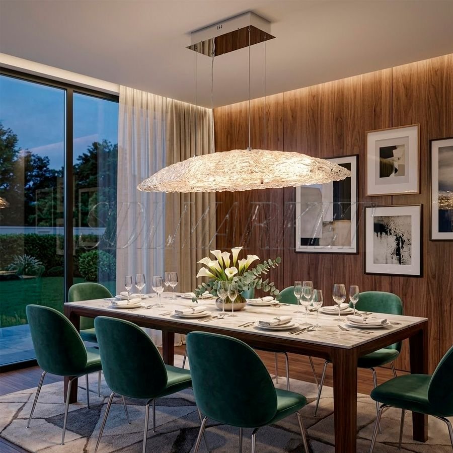 Подвесной светильник из коллекции Glitter (артикул MC0080-008) — это элегантное сочетание современного дизайна и премиальных материалов, созданное для преображения вашего интерьера. Модель длиной 900 мм выполнена из высококачественной нержавеющей стали с эффектным зеркальным хромированным покрытием и дополнена уникальным плафоном из фактурного стекла ручной работы, который создает неповторимую игру бликов. Благодаря теплой цветовой температуре 3000 К и высокому индексу цветопередачи CRI ≥ 90, этот светильник обеспечивает максимально комфортное и естественное освещение, идеально подходящее для зонирования обеденной зоны или гостиной. Гальваническое покрытие корпуса гарантирует долговечность и сохранение безупречного блеска, делая этот дизайнерский подвес центральным элементом стиля лофт, минимализм или неоклассика.