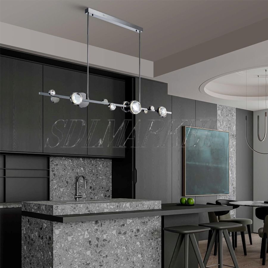 Монументальный линейный светильник из коллекции K9 Diamond длиной 1600 мм — это квинтэссенция роскоши ар-деко, созданная для масштабных интерьерных решений. Безупречное зеркальное покрытие корпуса из нержавеющей стали, нанесенное методом электрогальваники, эффектно контрастирует с россыпью массивных хрустальных дисков из кристалла K9. Обладая внушительной мощностью 60 Вт, этот светильник становится не просто источником света, а доминирующим арт-объектом над длинным обеденным столом или кухонным островом. Теплая цветовая температура 3000K и высочайший индекс цветопередачи CRI ≥ 90 гарантируют безукоризненное качество освещения, превращая пространство в зону абсолютного визуального комфорта и статуса.