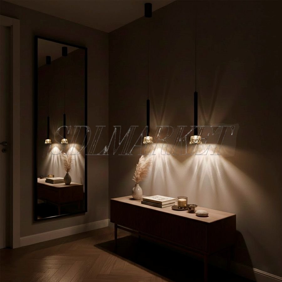 Дизайнерские подвесные светильники Vetro воплощает философию мягкого свечения и строгого минимализма, предлагая идеальное решение для тех, кто хочет купить дизайнерский подвесной светильник в стиле минимализм. Модели выполнены в прочном металлическом корпусе с элегантным покрытием под латунь или матовый черный, а плафоны из фактурного граненого стекла создают уникальную игру света и тени. Благодаря техническим параметрам — теплому спектру 3000K и высокому индексу цветопередачи CRI 90+ — эти современные светильники обеспечивают премиальное качество освещения, делая ваш интерьер визуально дороже и уютнее.
